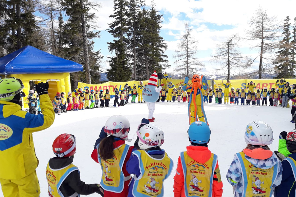 Großes Kinderfest jeden Mittwoch um 15:00 Uhr am Sammelplatz der Schischule St. Michael mit Snowsoccer- WM und anderen tollen Spielen. Lass dich überraschen. SMARTY hat wie immer eine tolle Überraschung für jeden Teilnehmer bereit!